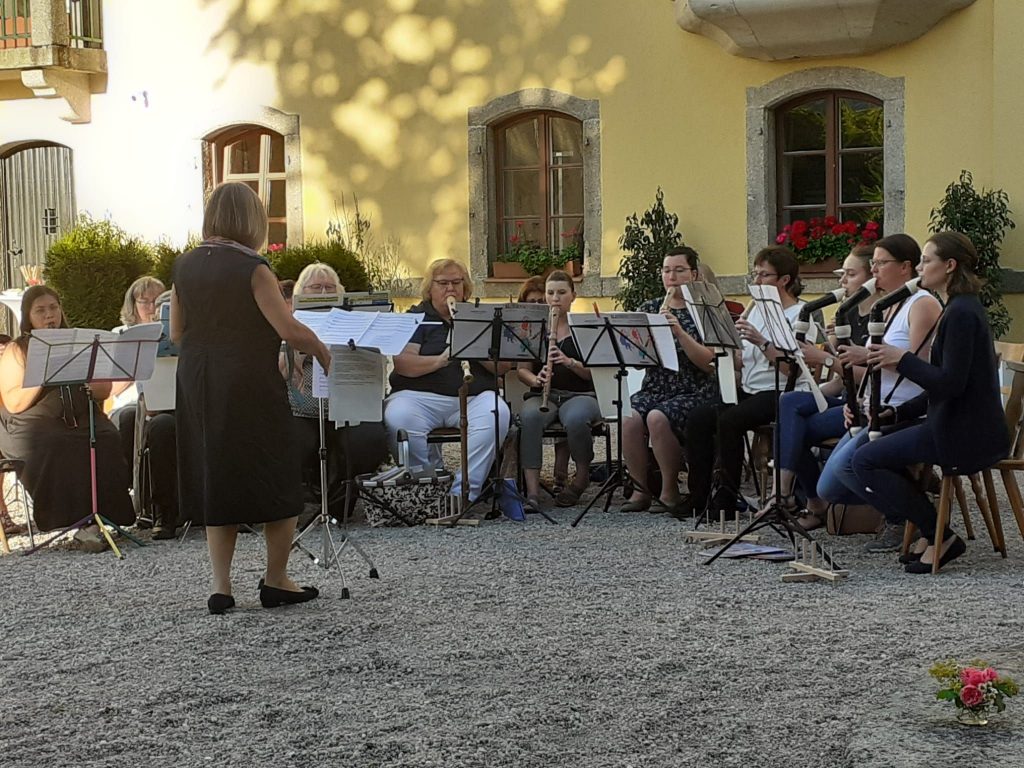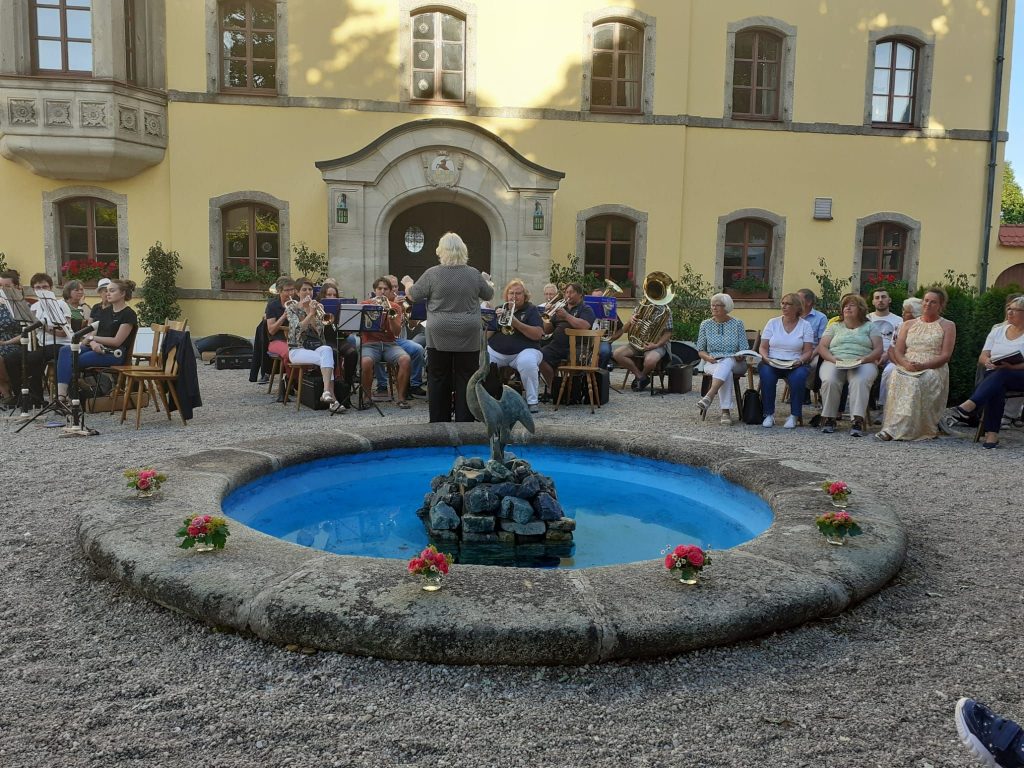 Kirchenmusik wird in unseren Gemeinden im Steinwald groß geschrieben. Erleben konnte man das am vergangenen Sonntag. Die Flötengruppen aus Krummennaab und Wildenreuth, der Posaunenchor Wildenreuth, der Projektchor sowie der Kinderchor der Steinwaldregion machten im Schlosshof Wildenreuth aus einem lauen Sommerabend einen musikalischen Genussabend. Über 120 Zuhörerinnen und Zuhörer hörten geistliche und weltliche Lieder von Klassik bis Lobpreis. Es war, so haben es viele Menschen gesagt, ein gelungener Abend.