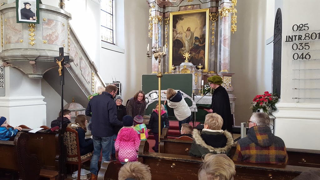 Damit hat Martin Luther in seiner Kirche mächtig viel Wirbel erzeugt. Wie es mit ihm weiter geht, das wird der nächste Familiengottesdienst am 28. Mai 2017 um 10:00 Uhr in Kirchendemenreuth zeigen. Dazu schon jetzt herzliche Einladung!