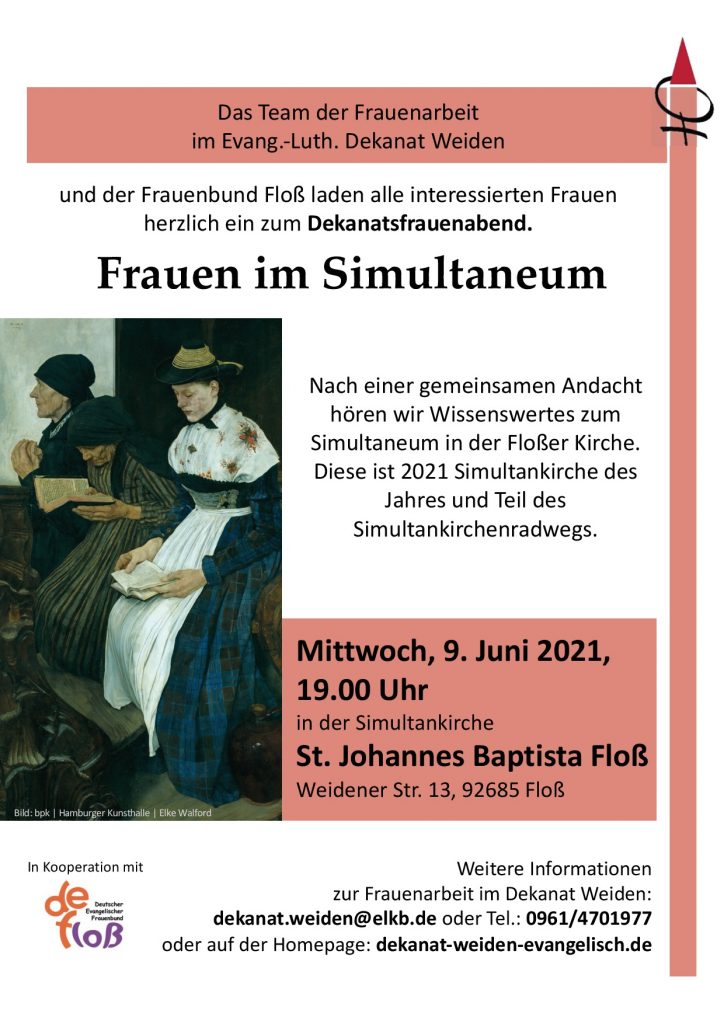 Weitere Infos hier: https://www.dekanat-weiden-evangelisch.de/frauen-im-simultaneum-vortrag-am-9juni