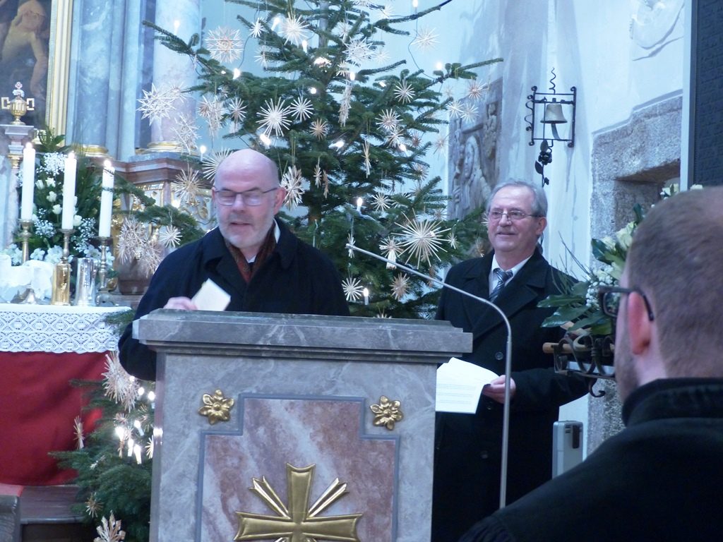 Durch die Grußworte führte Vertrauensmann Helmut Fichtner. Pfarrer Manuel Sauer sprach von den vielen wertvollen Begegnungen in den vergangenen Jahren. Er bedankte sich vor allem bei seiner Ehefrau Michaela für ihre Unterstützung. Weitere Grußworte sprachen Bürgermeister Hans Donko, Senior des Pfarrkapitels Dr. André Fischer und der katholische Pfarrer Martin Besold. Alle lobten Pfarrer Manuel Sauer für die gute Zusammenarbeit in den letzten drei Jahren und wünschten auch weiterhin alles Gute. Helmut Fichtner betonte nochmals wie froh unsere Gemeinde ist, dass sich die Familie Sauer entschieden hat in Wildenreuth zu bleiben.