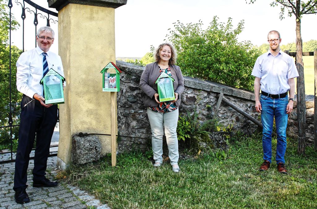 Dieses Denken prägt auch das Projekt „Häuschen der Hoffnung“, das zuerst in der Kirchengemeinde Floß ausprobiert und dann in unserer Pfarrei übernommen wurde. Dazu wurden kleine, winterfeste Häuschen in unseren Friedhöfen angebracht, die mit „geistlicher Nahrung“ (Spruchkarten und kleinen Heften) bestückt sind. Z.T. mussten sie schon mehrfach neu bestückt werden.